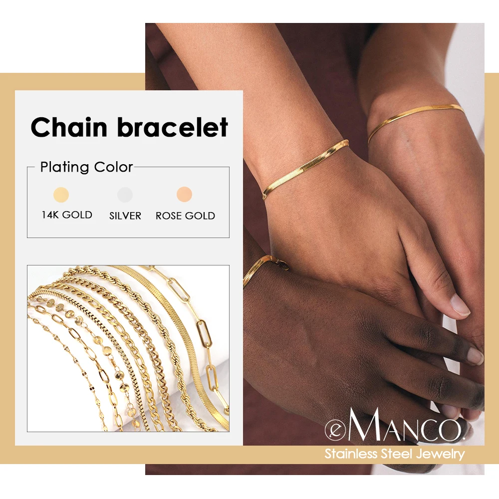 Женский классический браслет-цепочка eManco, золотистый браслет из нержавеющей стали шириной 345 мм, Подарочная бижутерия