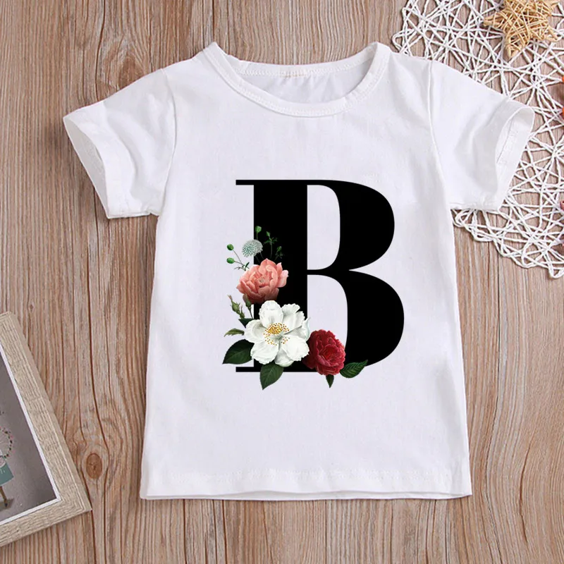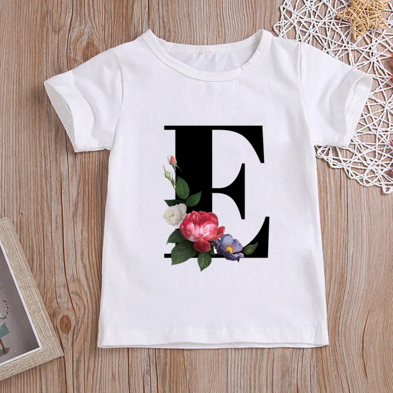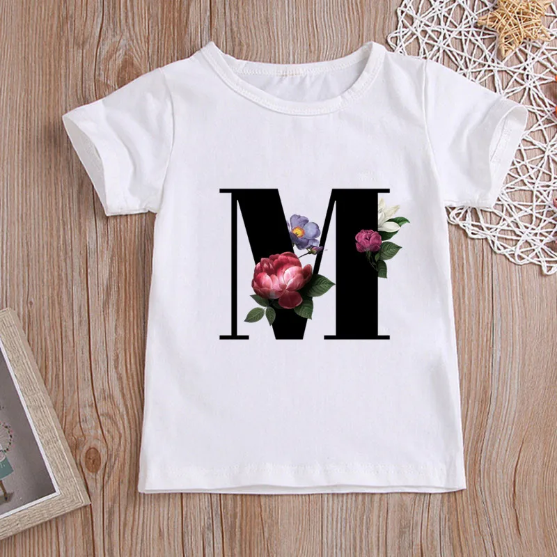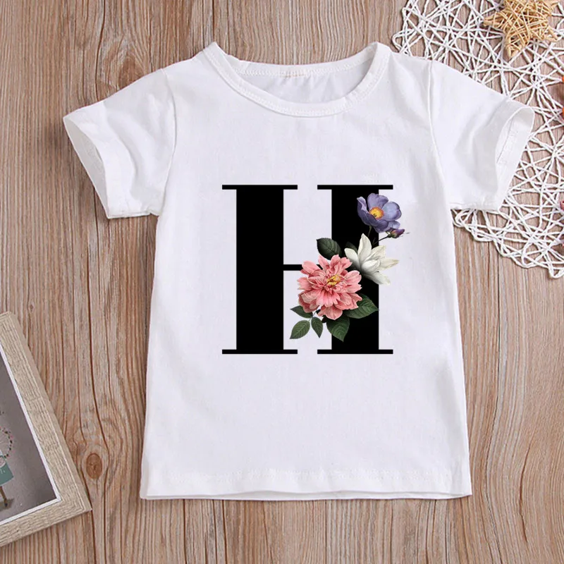 Детская футболка с коротким рукавом и надписью, с цветочным принтом