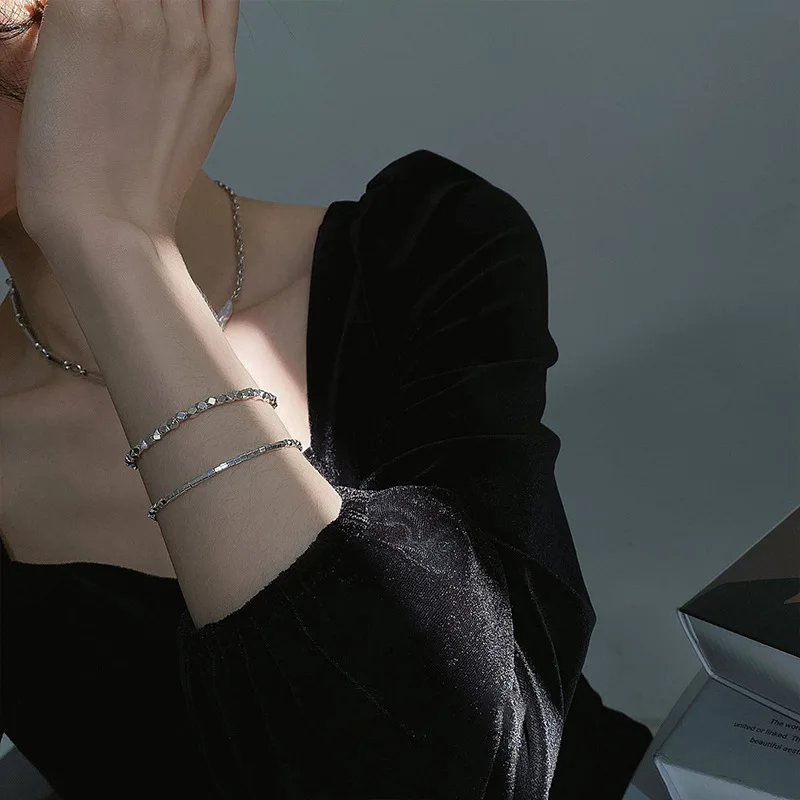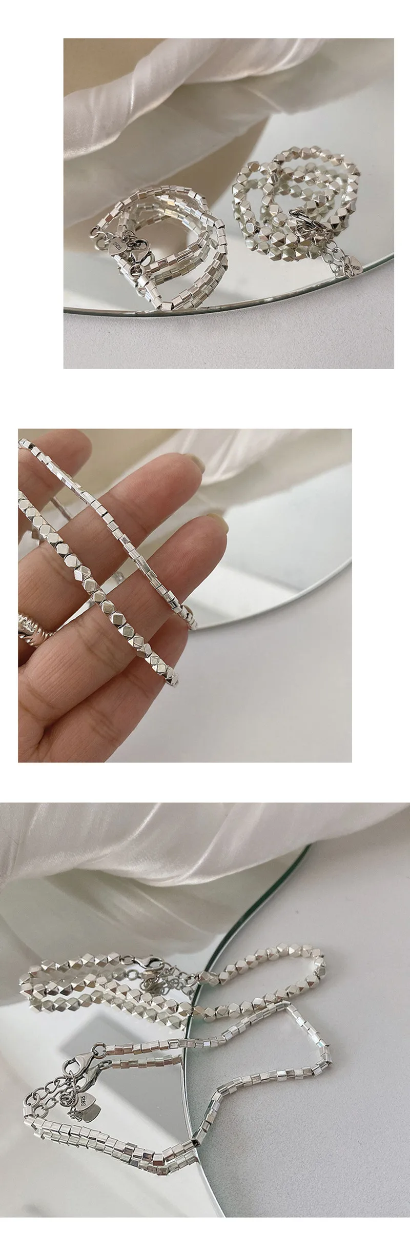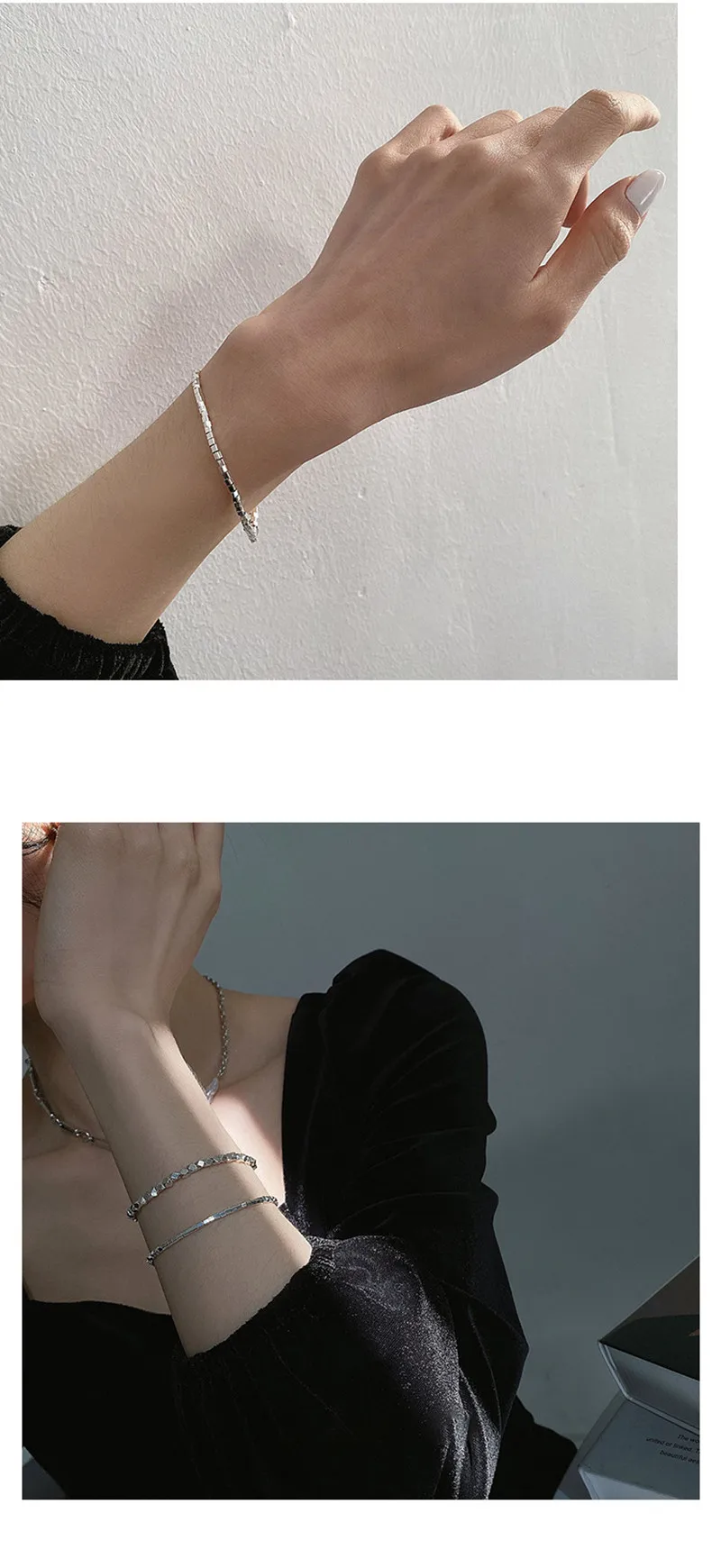 Браслет QMCOCO из серебра 925 пробы, корейские женские Модные Винтажные ЭЛЕГАНТНЫЕ ПАРЫ простые браслеты бисер геометрическая фигура, ювелирные украшения для вечеринок, подарки