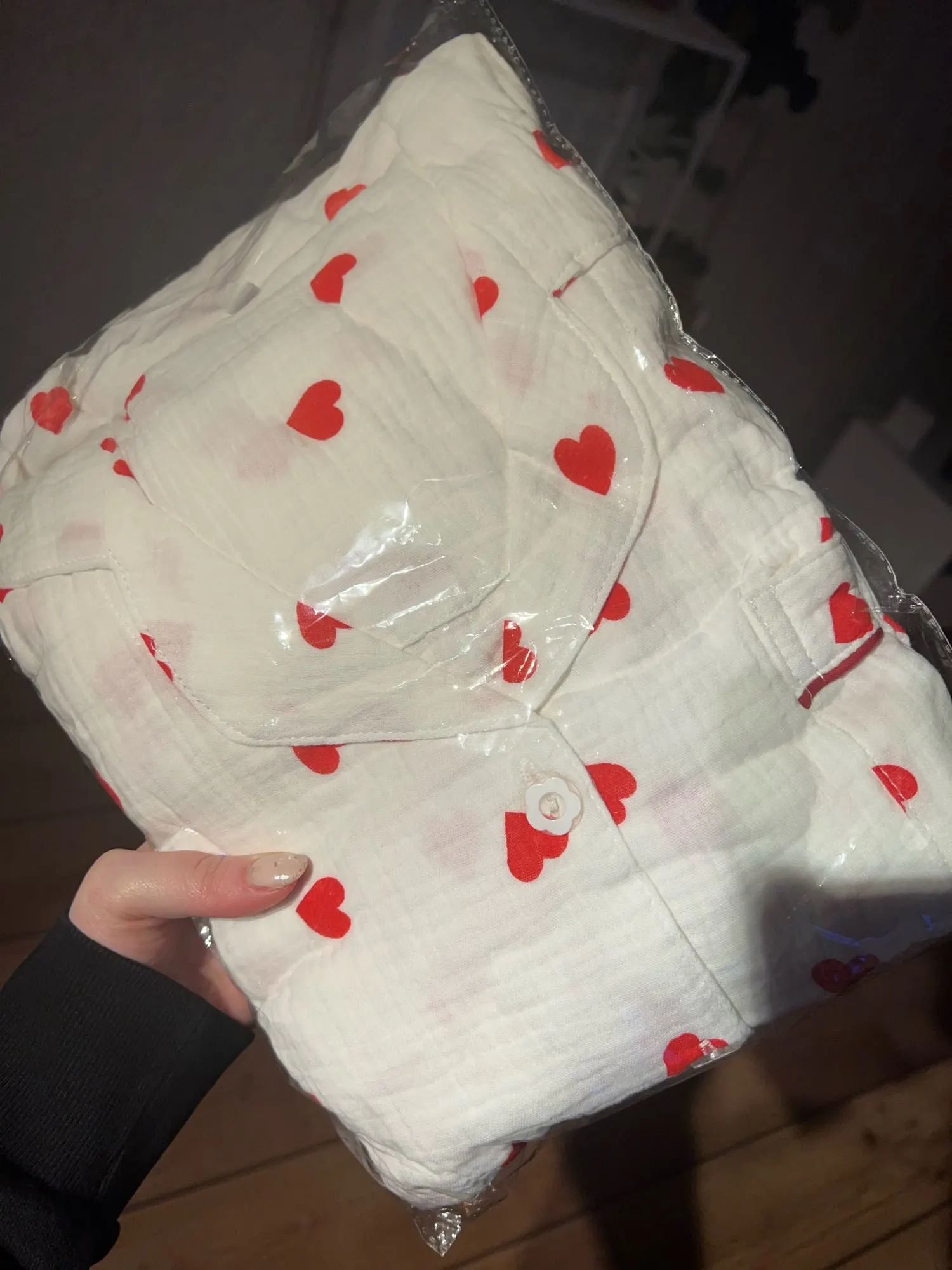 Пижамный комплект женский с отложным воротником, белый хлопковый комплект из 2 предметов, с принтом в виде сердца, рубашка и брюки, Свободная Домашняя одежда, весна-осень