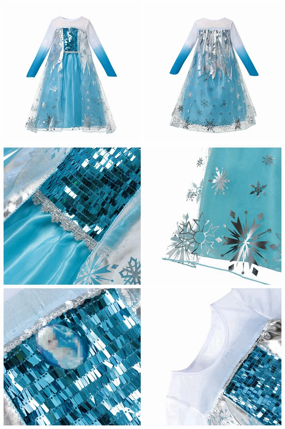 Детский карнавальный костюм Холодное сердце 2, Сетчатое платье Снежной королевы, снежинки для выпускного вечера, Принцессы Диснея