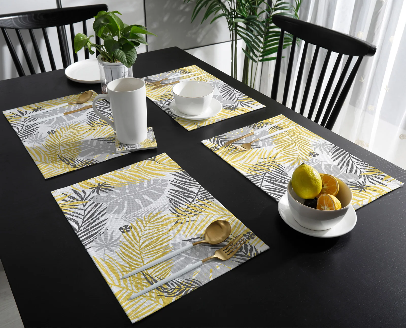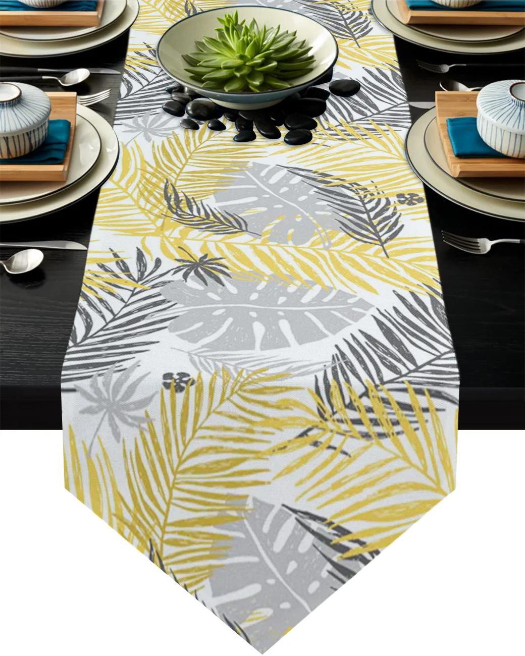 Серо-желтая скатерть с пальмовыми листьями, современный Настольный флаг, украшение для дома, вечевечерние НКИ, деревни, свадьбы, скатерть, скатерть для стола
