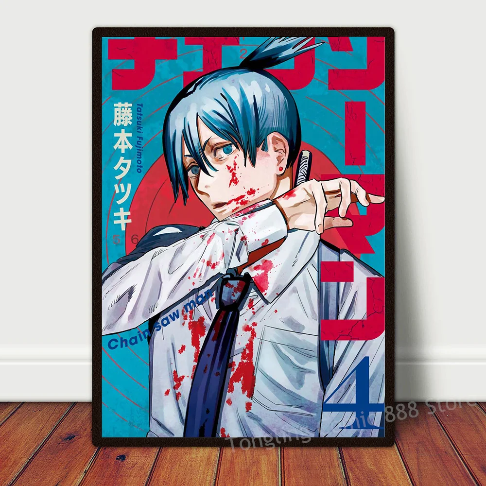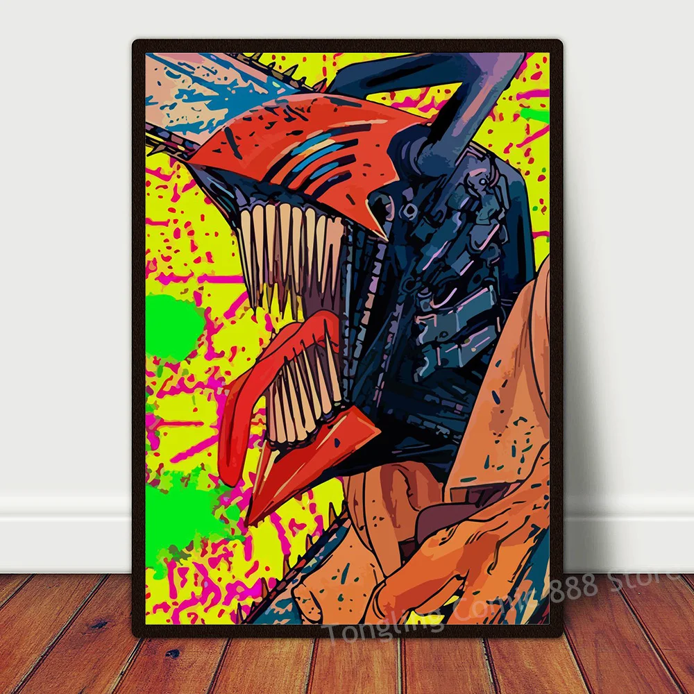 Постер японского аниме человек-бензопила, настенная Картина на холсте с принтом манги, крови, красного цвета, для спальни и общежития, Декор