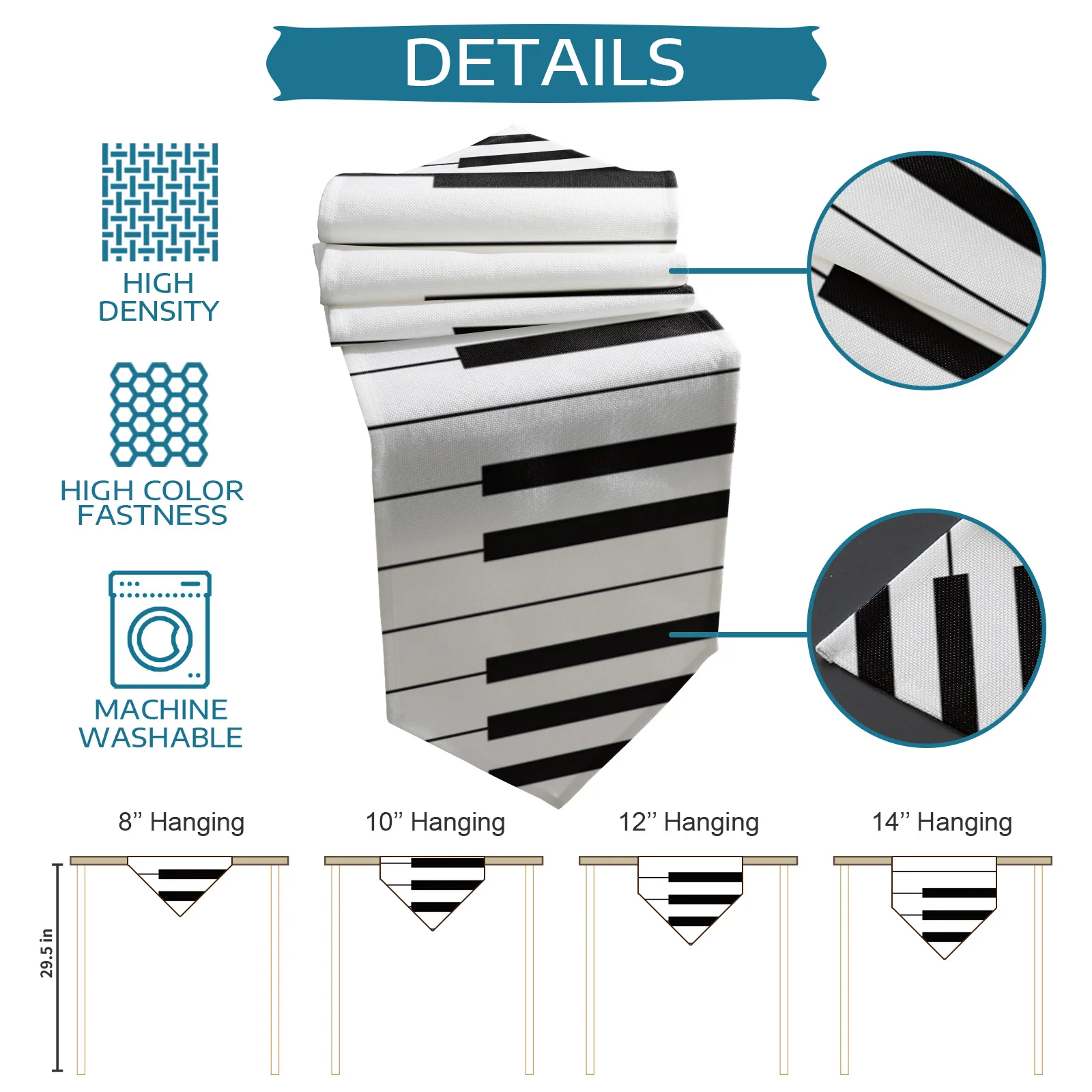 Черно-белая клавиатура для пианино, музыкальная настольная дорожка для деревенской свадьбы, столовая подставка для столового стола, художественная настольная дорожка