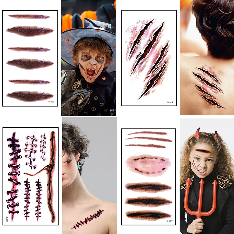 Мини Хэллоуин кровавые раны страшные шрамы водостойкая временная татуировка наклейки Хэллоуин страшная рана реалистичные Прошитые травмы