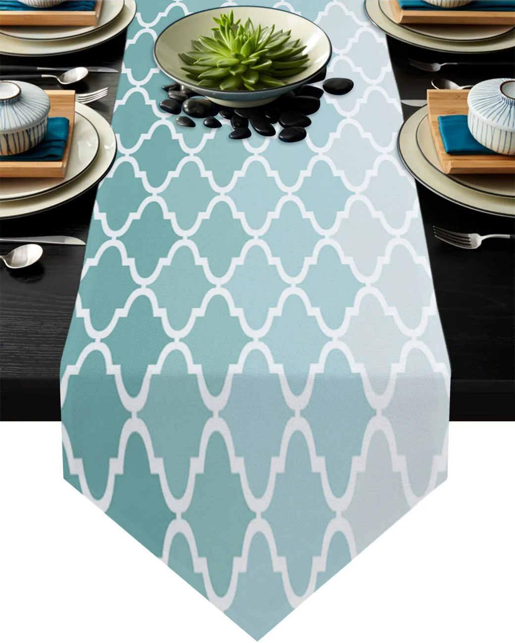 Геометрическая синяя зеленая градиентная Бирюзовая настольная дорожка для деревенской свадьбы настольная подставка для столового стола художественная настольная дорожка s