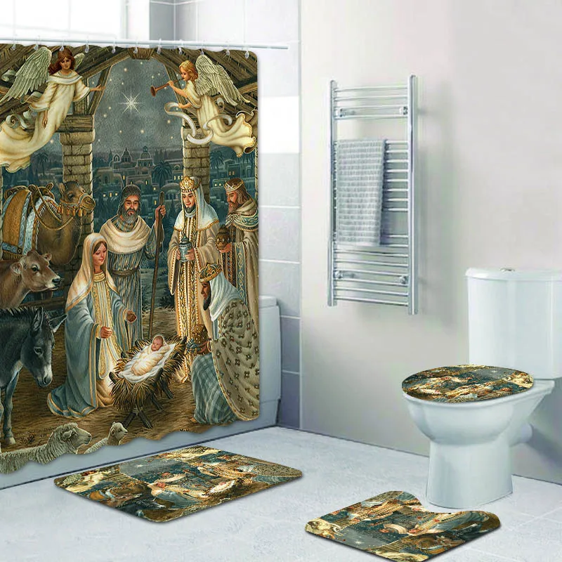 Рождение Рождества Иисуса, занавеска для душа для ванной комнаты, домашний декор, Рождественская сцена Рождества, три мудреца, коврик для ванной с ангелом, Декор