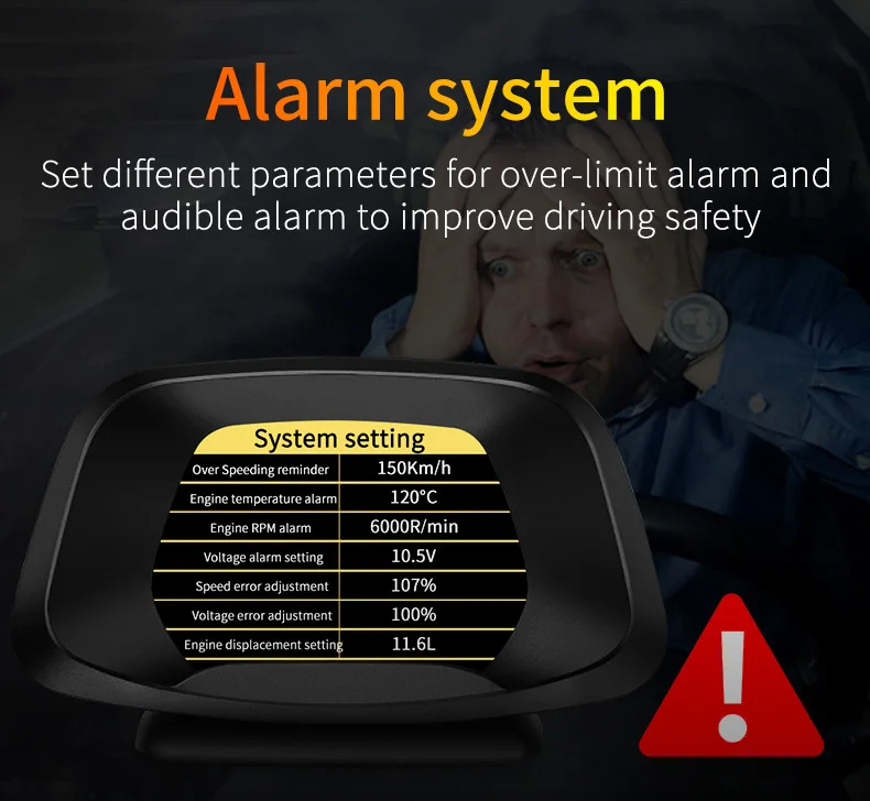 Сигналы тревоги OBD2:Сигнализация с превышением скорости, сигнализация об/мин, сигнализация с напряжением батареи, сигнализация с температурой воды, сигнализация с кодом ошибки