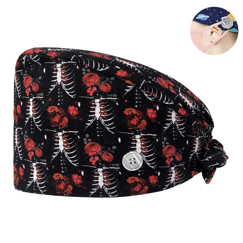 Шапка для медсестры с цветочным узором, регулируемая шапка с разным...