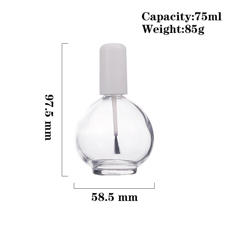Многоразовые прозрачные 75 мл пустые большие круглые контейнер для геля стеклянных флаконов для лака для ногтей с мягкой кисточкой, с черным колпачком