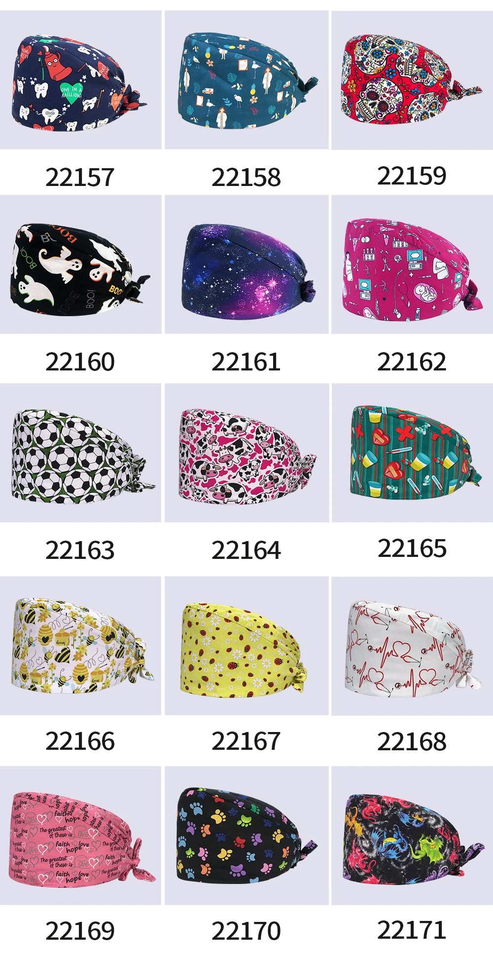 Шапка для медсестры с цветочным узором, регулируемая шапка с разным...