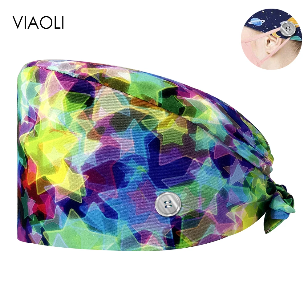 Многоцветная шапочка для медсестры, дышащая хлопковая Регулируемая ...