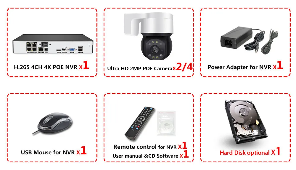 2/4 x HD POE IP 2.0MP Крытый Открытый ИК камеры дневного ночного видения;