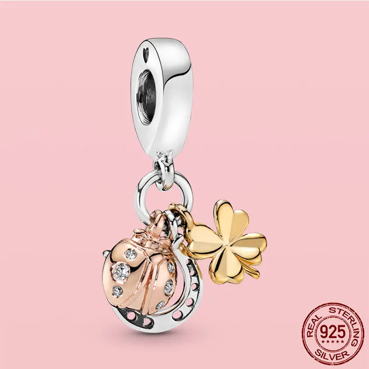 Бусина-Шарм божья коровка и клевер из серебра 100% пробы