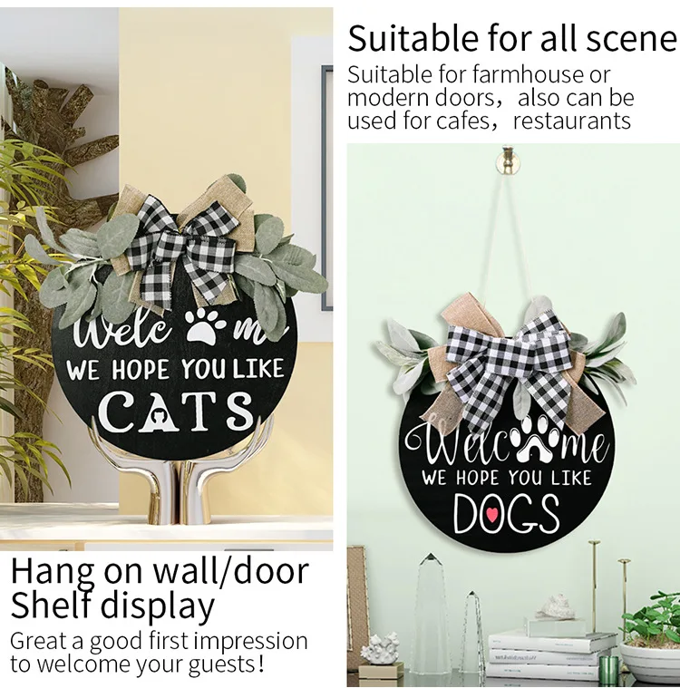 1 комплект, подвесной дверной знак, венок, вешалка для входной двери, Круглый уличный подвесной вертикальный знак, украшение для дома