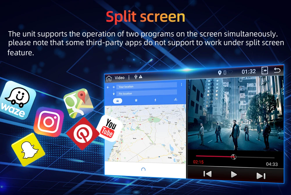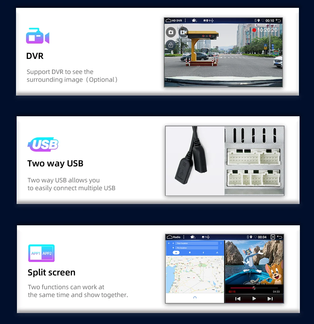 FeaturesSpeakers,DVD Player,Mirror link,colorful button light,RDS,USB,SD