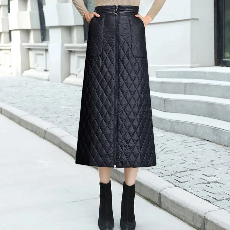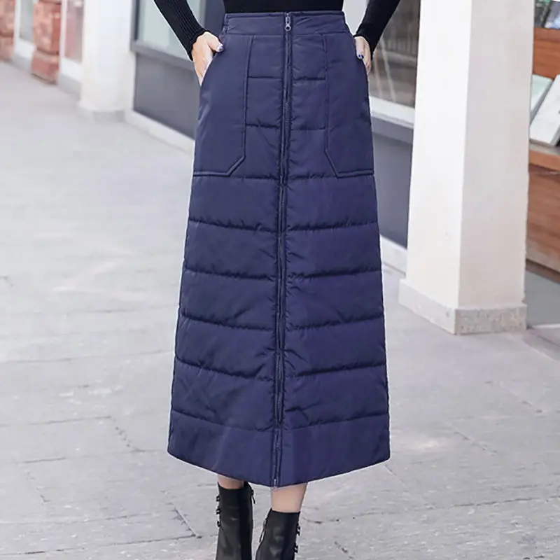 Юбка женская хлопковая, средней длины, плотная, однотонная, трапециевидная, на осеньзиму, 2021, 5XL