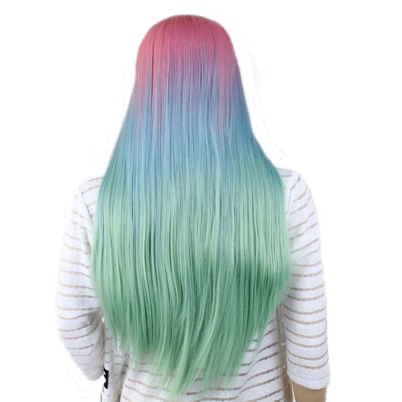 Синтетические волосы, Длинные прямые, розовые, мятные, с эффектом омбре, парики для косплея Для чернокожих, белых женщин, цветные волосы, высокотемпературные