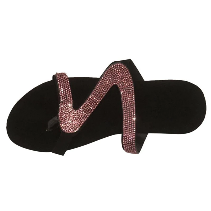 Женские шлепанцы с блестящими стразами, пляжные тапочки плоские туф...