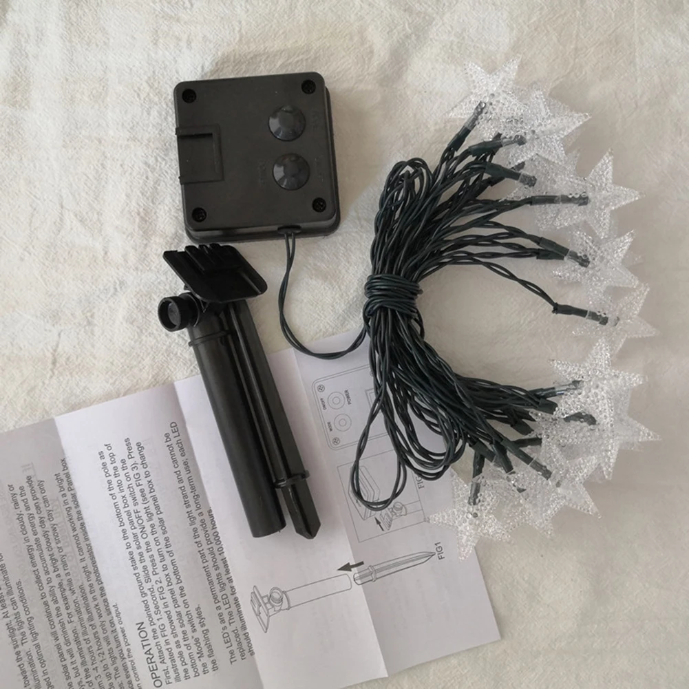 Светодиодный светильник на солнечной батарее со звездами, Сказочная лампа, гирлянда, гирлянда для дома, для детей, для спальни, вечерние, новогодние, рождественские украшения Спецификация: Солнечная панель: 2V100mA (весна и лето), 2v150mA (осень и зима) Аксессуары: заземляющий штекер, звезда Светодиодный светильник; Цвет: теплый белый Модель продукта: 20 светодиодный 5 м, 30 светодиодный 6,5 м, 50 светодиодный 9,5 m, 100 светодиодный 12 м Размер внутренней коробки: 16x8x9 см Упаковка: в коробке Режимы: 2 режима (20 светодиодный, 30 светодиодный); 8 режимов (50 светодиодный, 100 светодиодный) Примечание: Из-за светильник экране монитора фактический цвет детали цвет изделия на фото может быть s светильник ly отличаться от показанного на изображении. Возможны отклонения в размере на 1-2 см из-за ручного измерения.