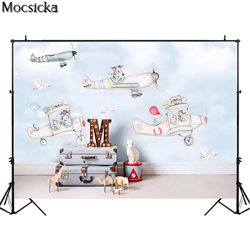 Фон для фотосъемки с изображением летательного аппарата на 1-й День рождения мальчика новорожденного ребенка путешествия ребенок день рождения фон для студийной фотосъемки