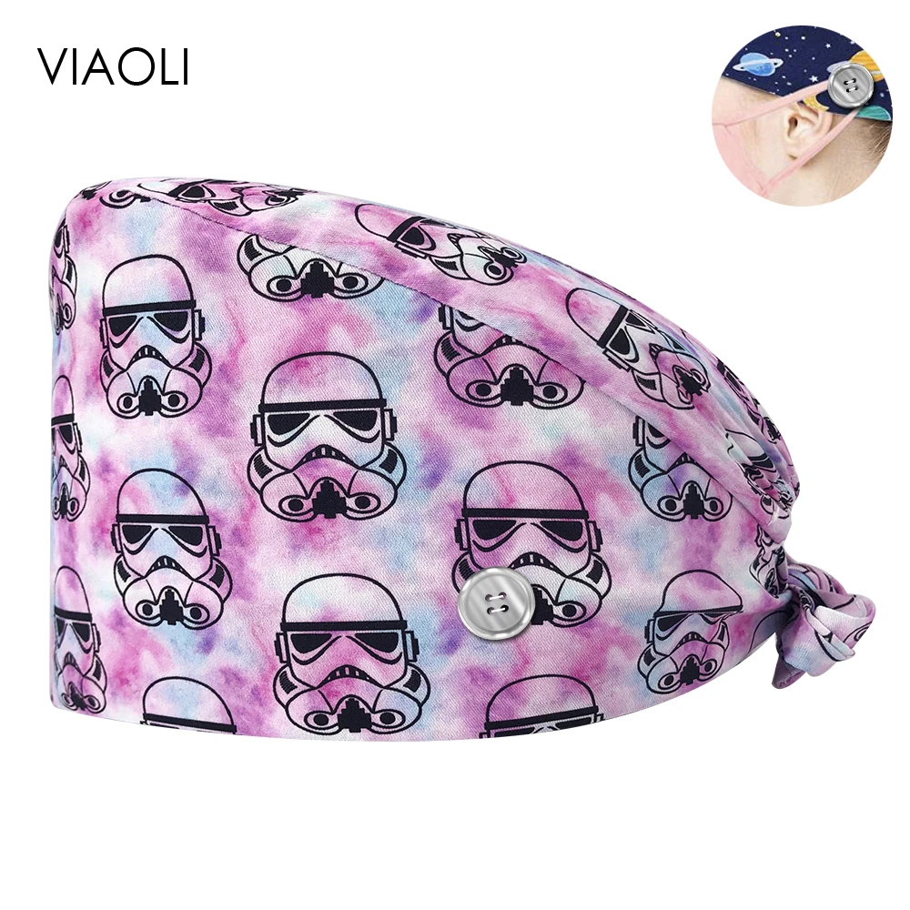 Хлопковая шапка-скрабы с принтом, шапка для оператора лаборатории, ...