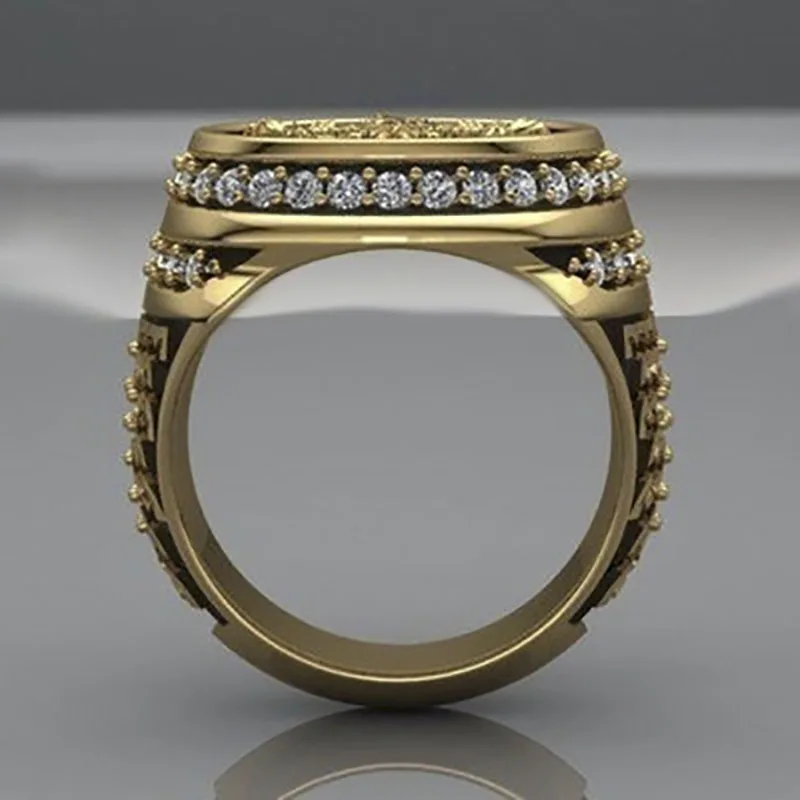 Кольцо мужское в виде Головы Орла и стразы золотистого цвета