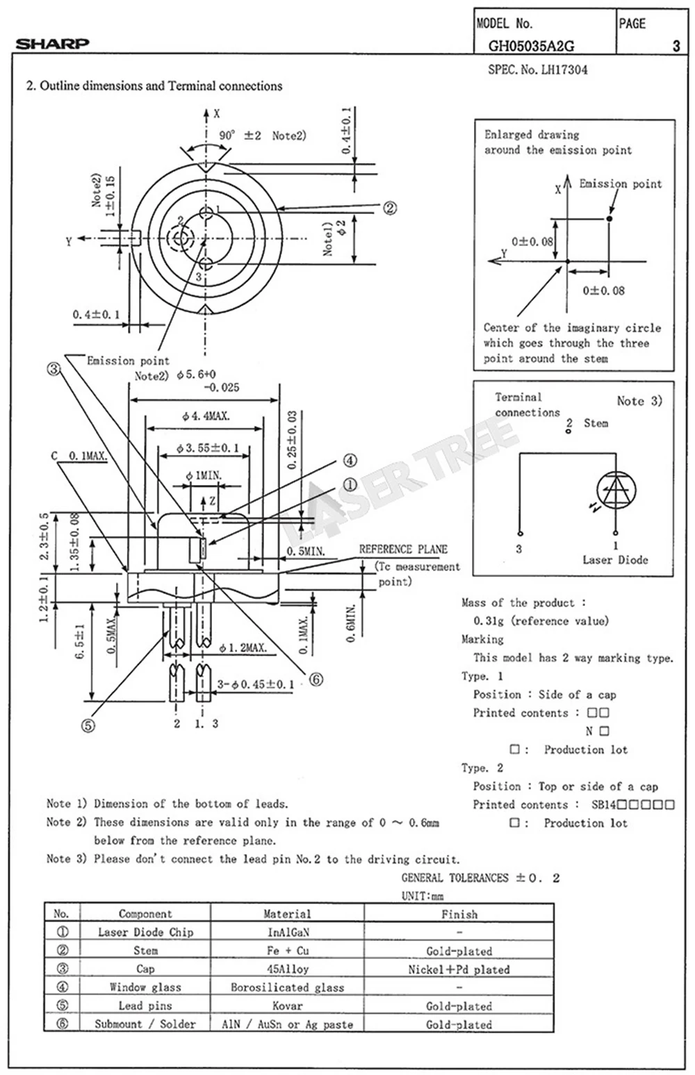 SHARP GH05030C2LM 5,6 нм 35 мВт светильник-зеленый лазерный диод LD мм