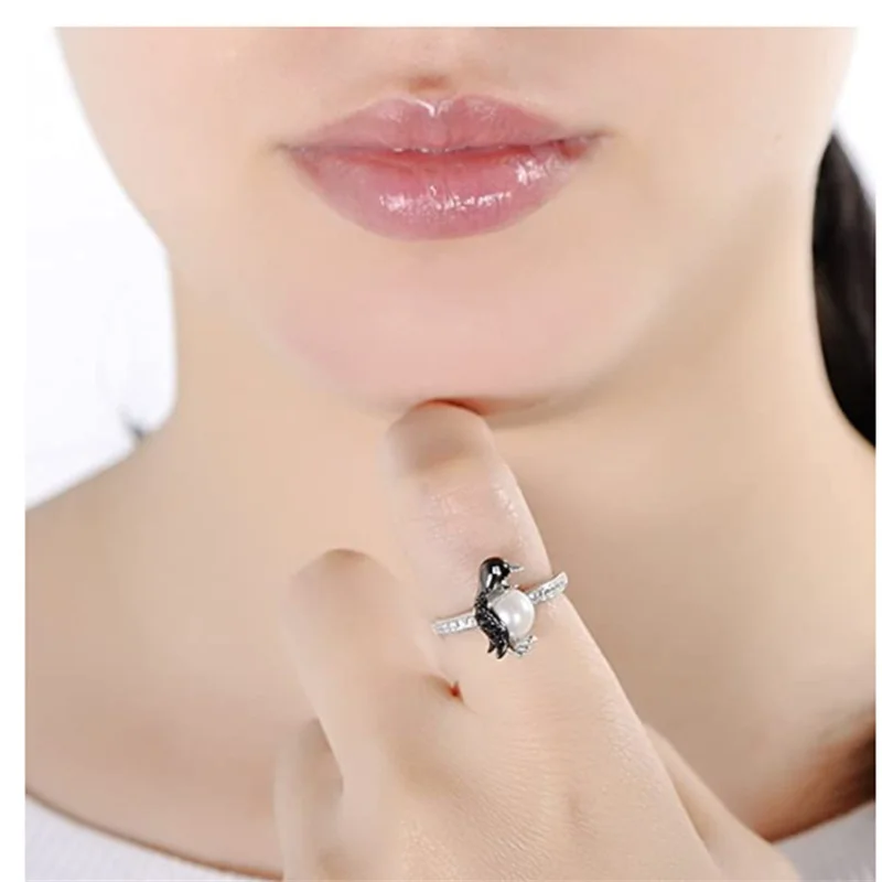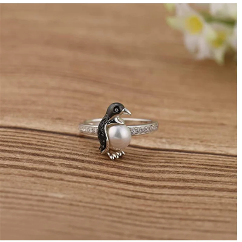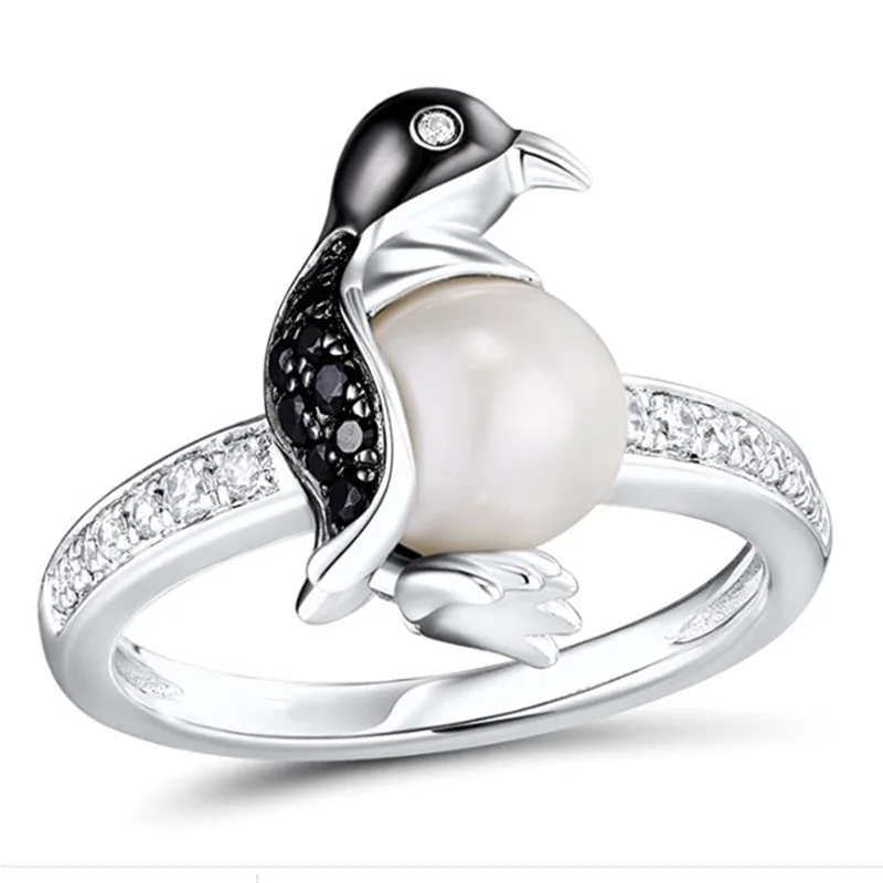 Новое креативное металлическое кольцо с изображением черных пингвин...