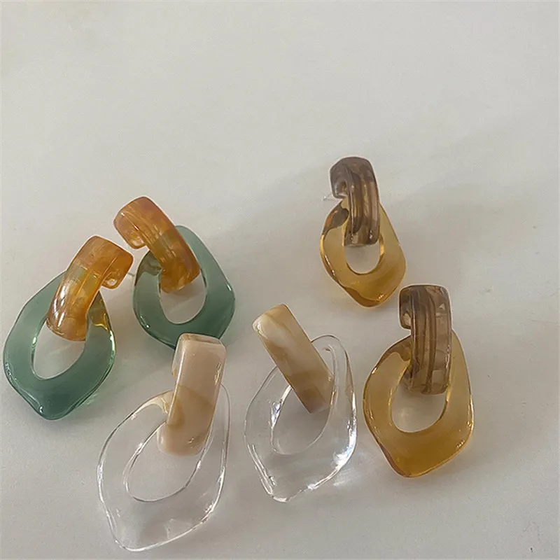 2021 красочные прозрачные акриловые висячие серьги из прозрачной смолы, геометрические полые Висячие серьги для женщин и девушек, ювелирные изделия