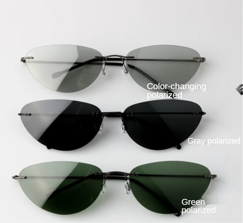 Мужские солнцезащитные очки без оправы, ультралегкие Овальные Солнцезащитные очки с поляризацией из титана, для вождения, 2021