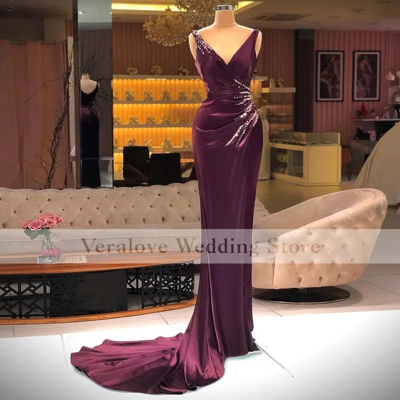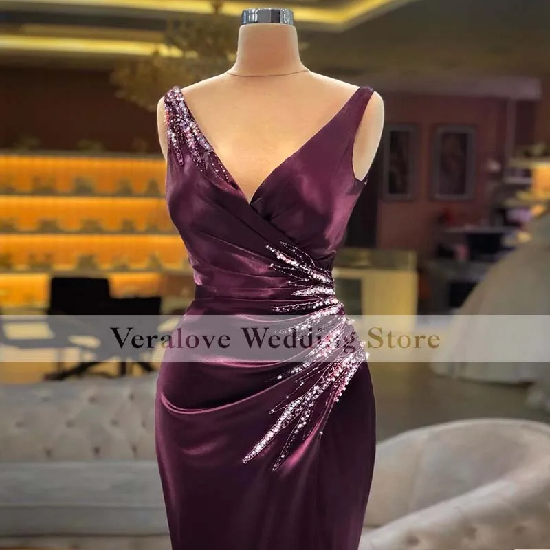 Женское атласное платье с юбкой-годе, фиолетовое вечернее платье с V-образным вырезом и юбкой-годе для гостей на свадьбе и выпускном, Дубай, 2021