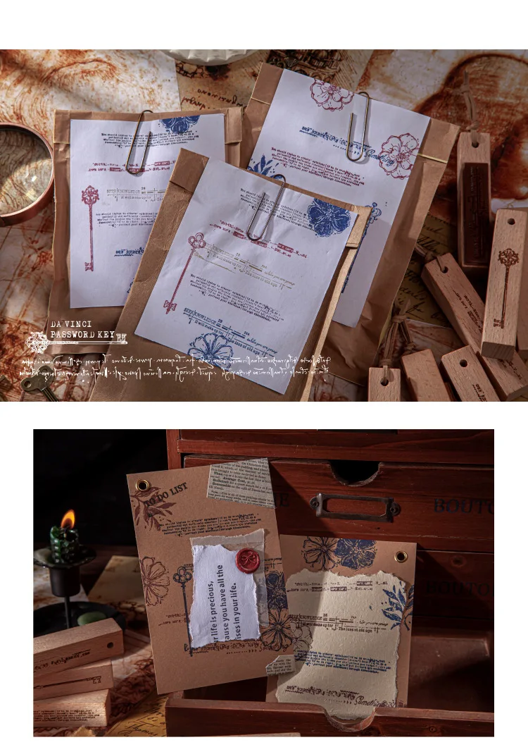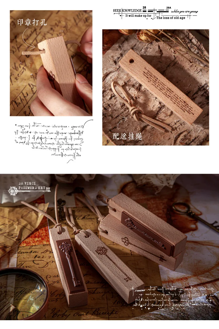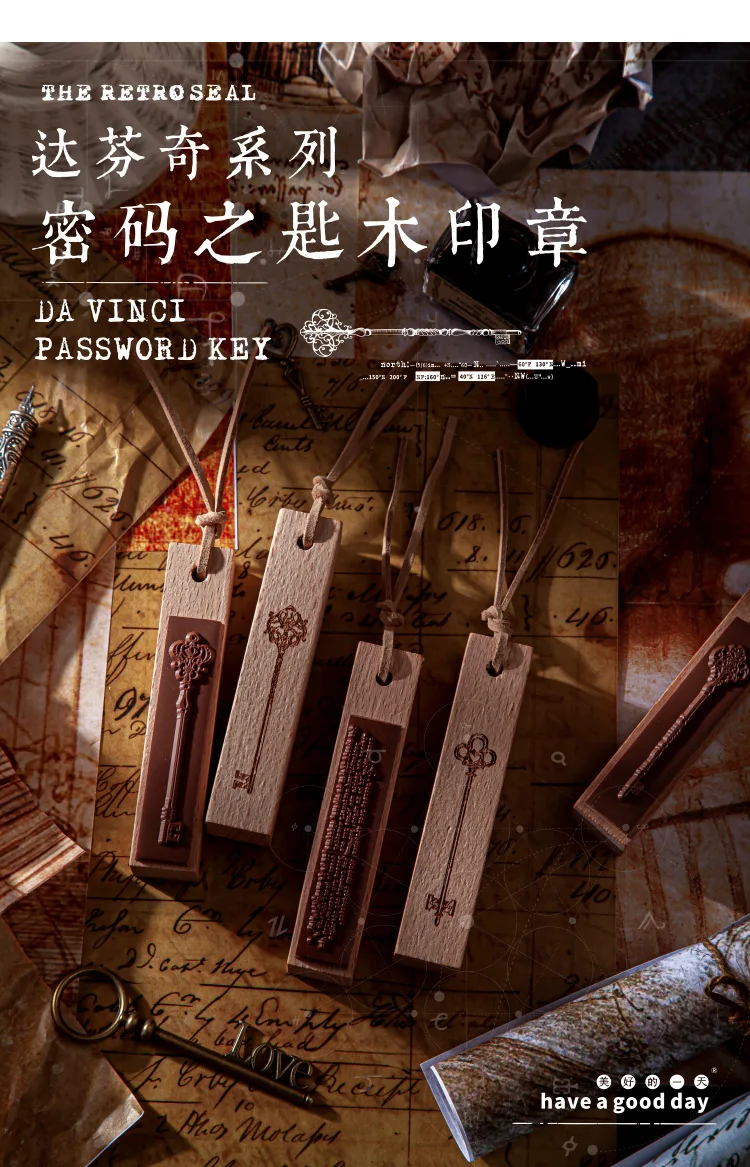 Деревянный резиновый штамп, винтажные резиновые штампы с деревянным креплением для ключа да Винчи, для рукоделия, скрапбукинга, дневника