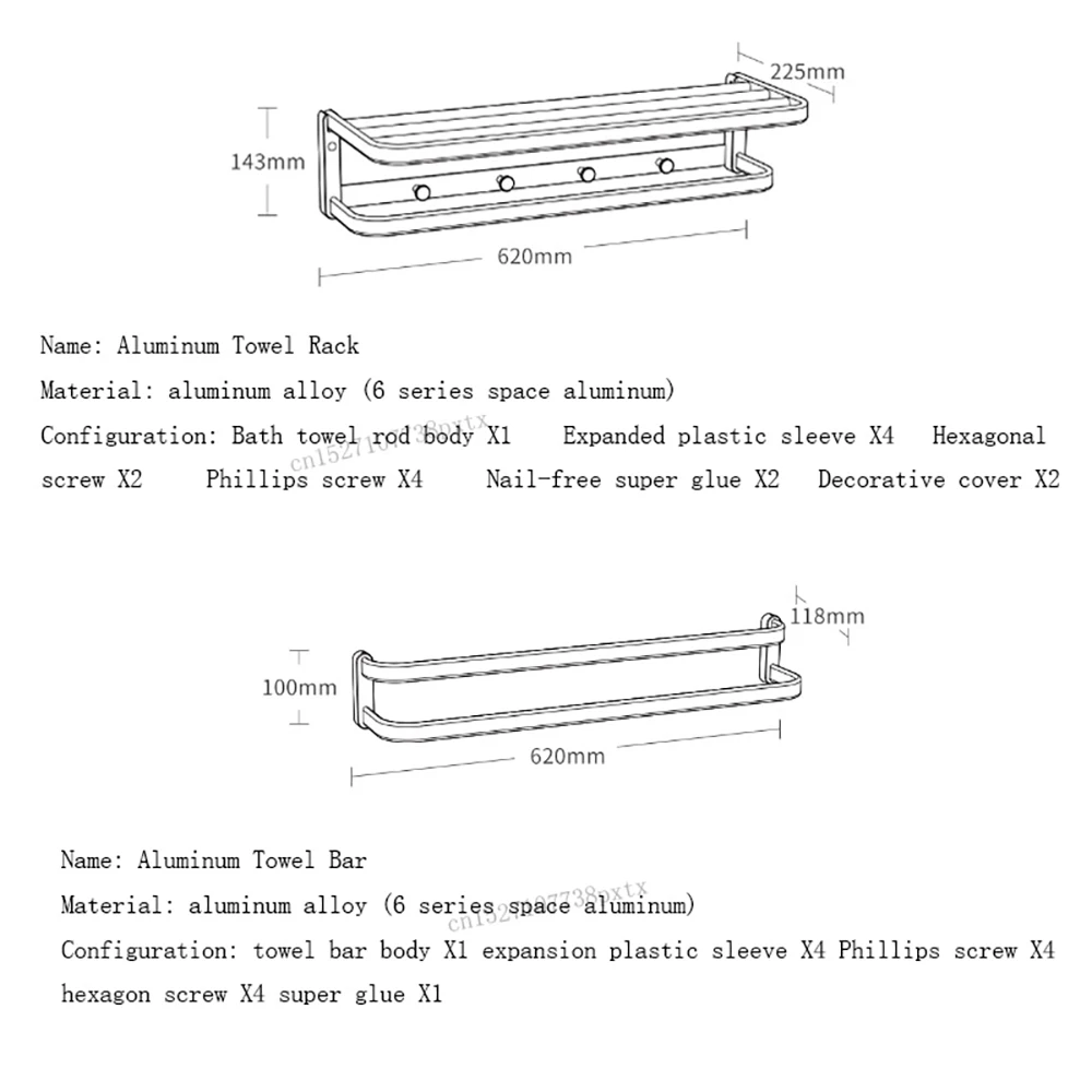 Diiib Dabai комплект подвесок из алюминиевого сплава для ванной комнаты, вешалка для полотенец без перфорации, вешалка для полотенец, держатель для туалетной щетки, коробка для салфеток, крючок