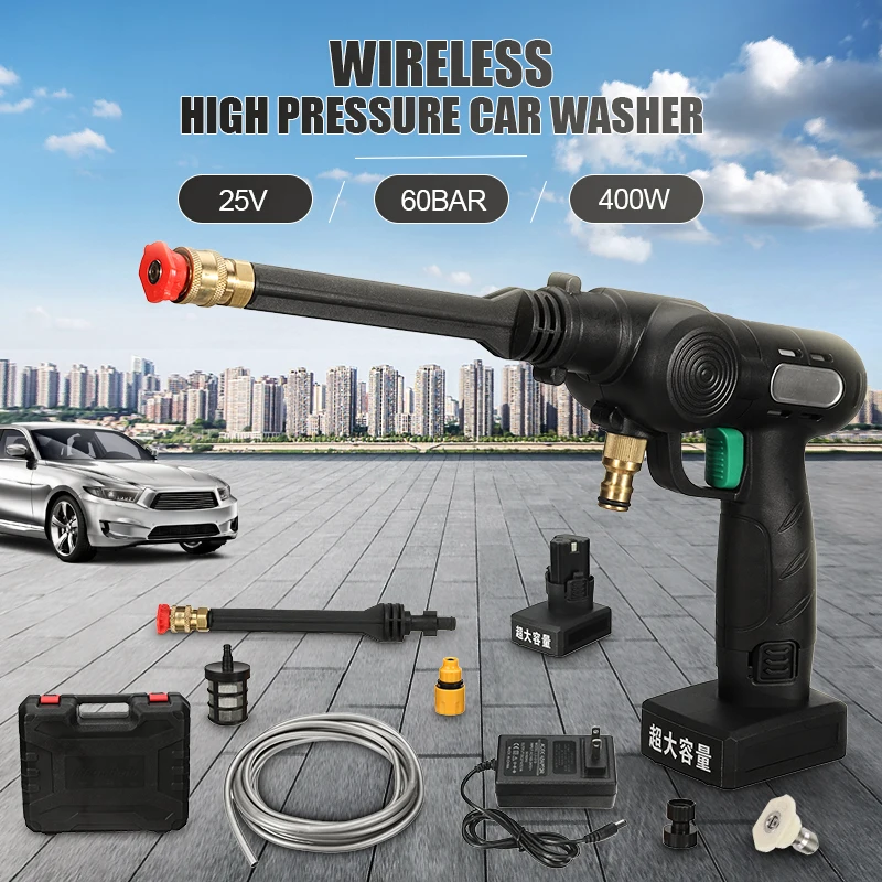 Audew 400 Вт 15000 мАч 60 бар Беспроводная Автомойка высокого давления, водяной пистолет, водяной пистолет, автомойка высокого давления