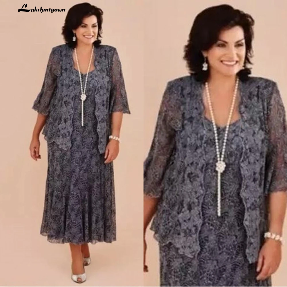Элегантные серые платья для матери невесты, костюмы с куртками, кружевное платье длиной ниже колена, официальное платье для гостей свадебной вечеринки, Новинка