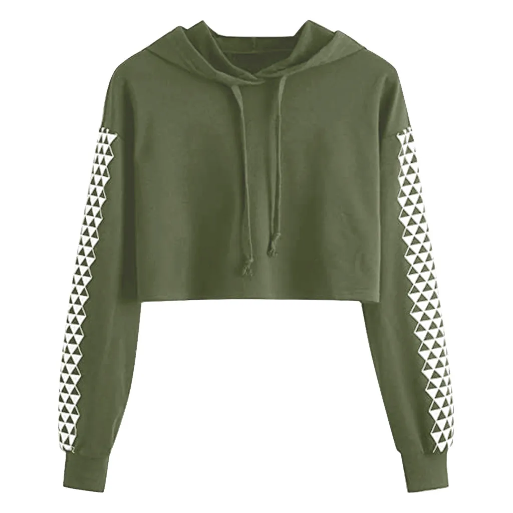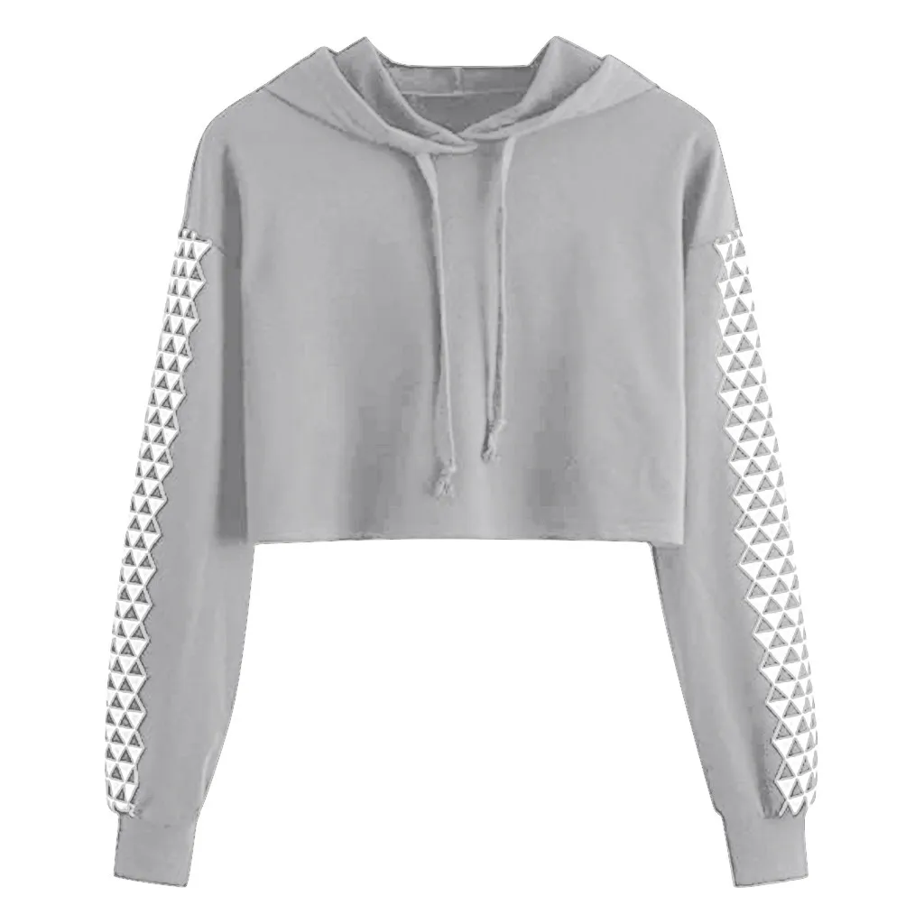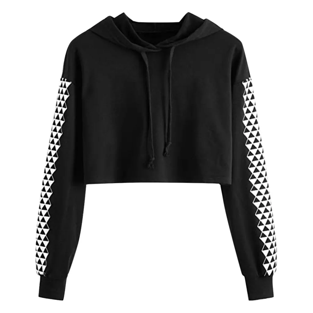 Женские укороченные топы с 3D принтом, толстовки, свитшоты в клетку, пуловер, свитшот, топы с длинным рукавом и принтом звезд