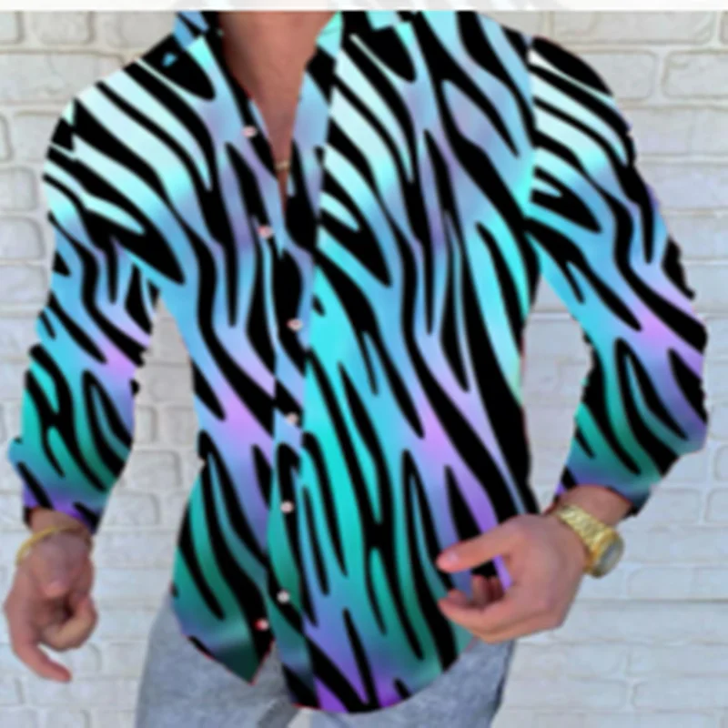 Рубашка мужская с длинным рукавом, Повседневная блуза с принтом, удобная блуза из полиэстера, приталенный силуэт, лето