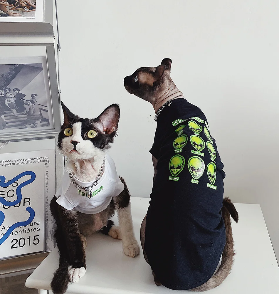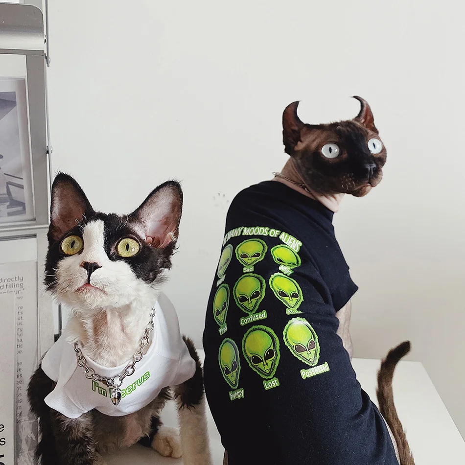 Модная одежда для кошек и сфинков, хлопковая Футболка с принтом инопланетянина, сфинкса, одежда для кошек на весну и лето, одежда для котят и Сфинкса, футболка, пальто