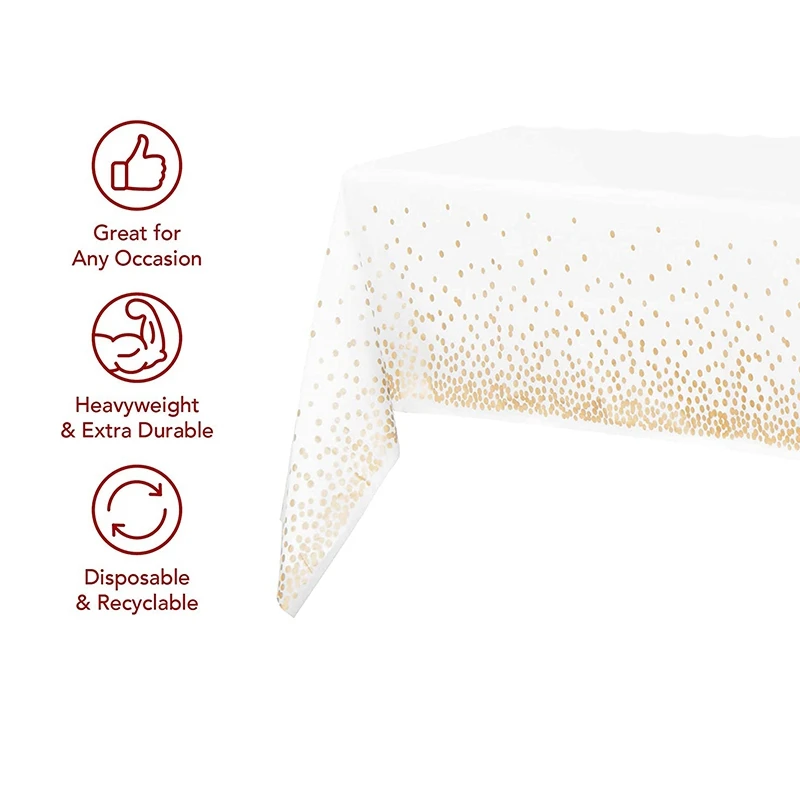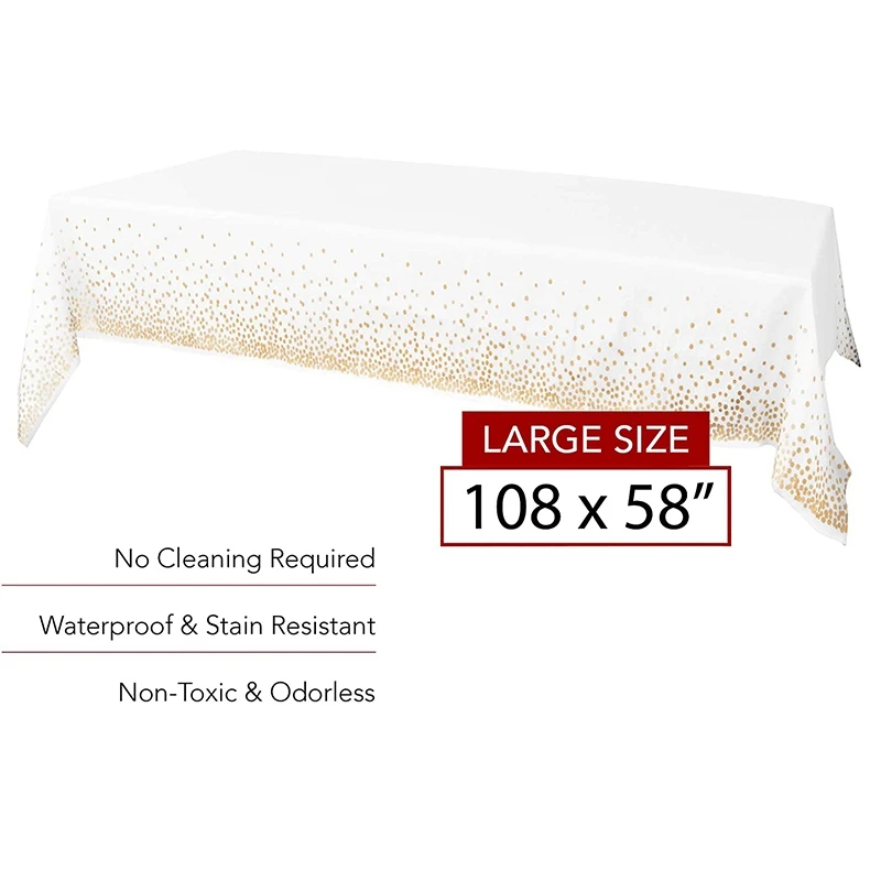 Поднимите атмосферу стола-и всей комнаты-с элегантным белым, чтобы дополнять очки и столовое серебро.Эти скатерти изготовлены из сверхпрочного высококачественного материала, который является 100% водонепроницаемым и стойким к пятнам, но более легким и привлекательным, чем виниловые скатерти.Скатерти одноразовые, что делает их более чистыми и гигиеничными, чем многоразовые льняные варианты. Они нетоксичные и без запаха с нулевой очисткой. Высококачественный материал может быть переработан, что минимизирует их углеродный след.Цвет: Золотой + белыйМатериал: ПВХРазмер: 137x274 смПосылка:4 комплекта х скатертьТолько вышеуказанная посылка, другие товары не включены.Примечание: светильник и различные дисплеи могут привести к тому, что цвет товара на картинке немного отличается от реального. Допускается погрешность в измерениях +/- 1-3 см.