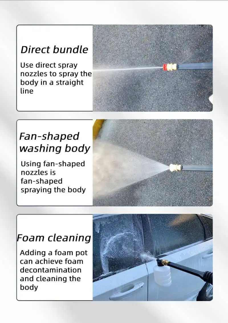 1. Беспроводная Автомобильная стиральная машина не ограничена длиной провода.2.Большой двигатель серии 750,Мощный медный мотор 400 Вт, двигатель из чистой меди, более длительный срок службы3. Различные режимы воды можно переключать, три метода распыления4. 20000 ОБ/мин скорость может работать непрерывно, долгий срок службы5. Диапазон давления воды высокой интенсивности до 12 метров6. Прочная литиевая батарея, длительный срок службы батареи, можно мыть три автомобиля одновременно7. Высокоэффективная литиевая батарея, с пятью основными защитой: перезарядка, перезарядка, Перегрузка по току, температура и короткое замыкание8. Многофункциональная Очистка высокого давления, очень подходит для мытья автомобиля, полива сада, орошения сельского хозяйства и ежедневной очистки9. Съемный аккумулятор, отдельная зарядка, безопасный и эффективный10. Простота установки и простота в использовании