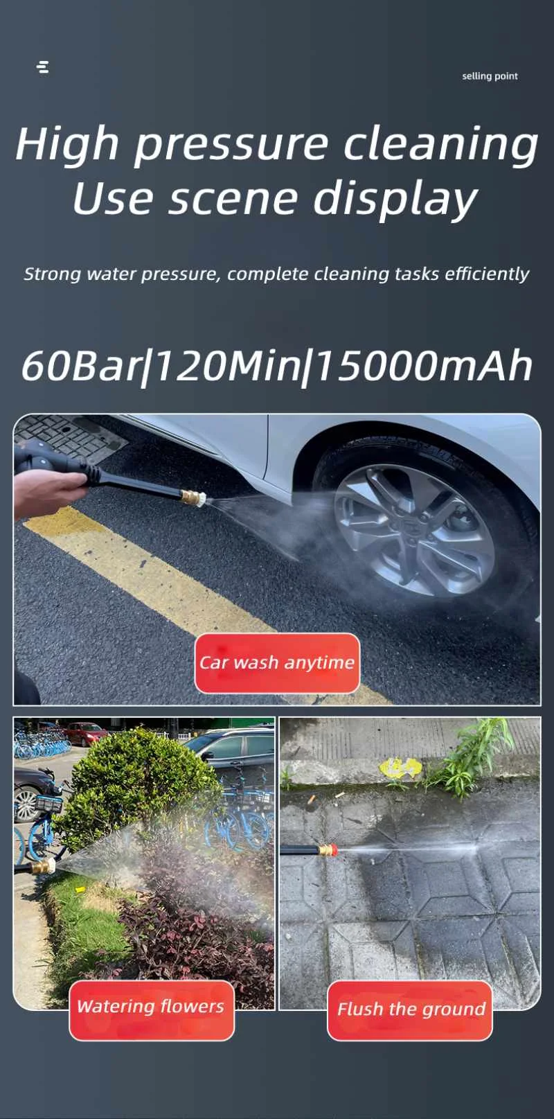 Беспроводной пистолет-распылитель воды, 400 Вт, 15000 мАч, 60 бар