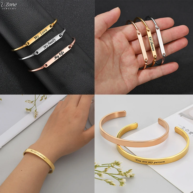 Модные блестящие браслеты из нержавеющей стали с персонализированными именами буквами, браслеты-манжеты для женщин, подарки, ювелирные изделия