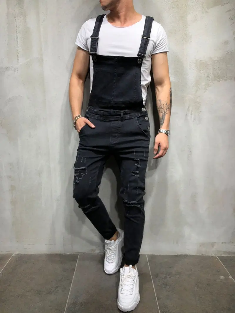 2021 KB Модные мужские рваные джинсовые комбинезоны длиной до щикол...
