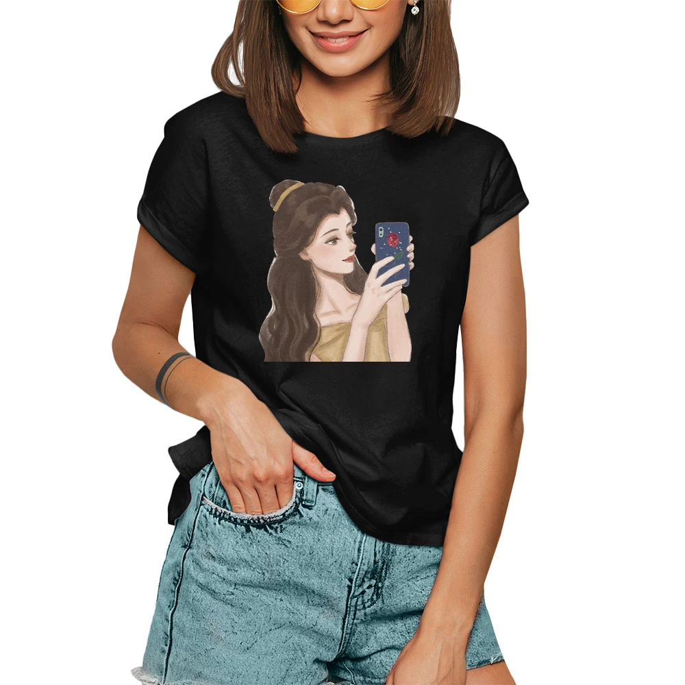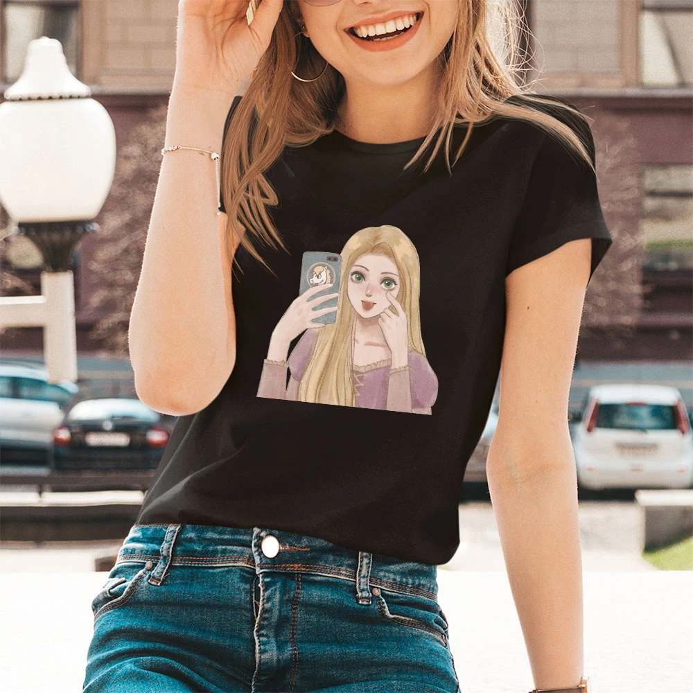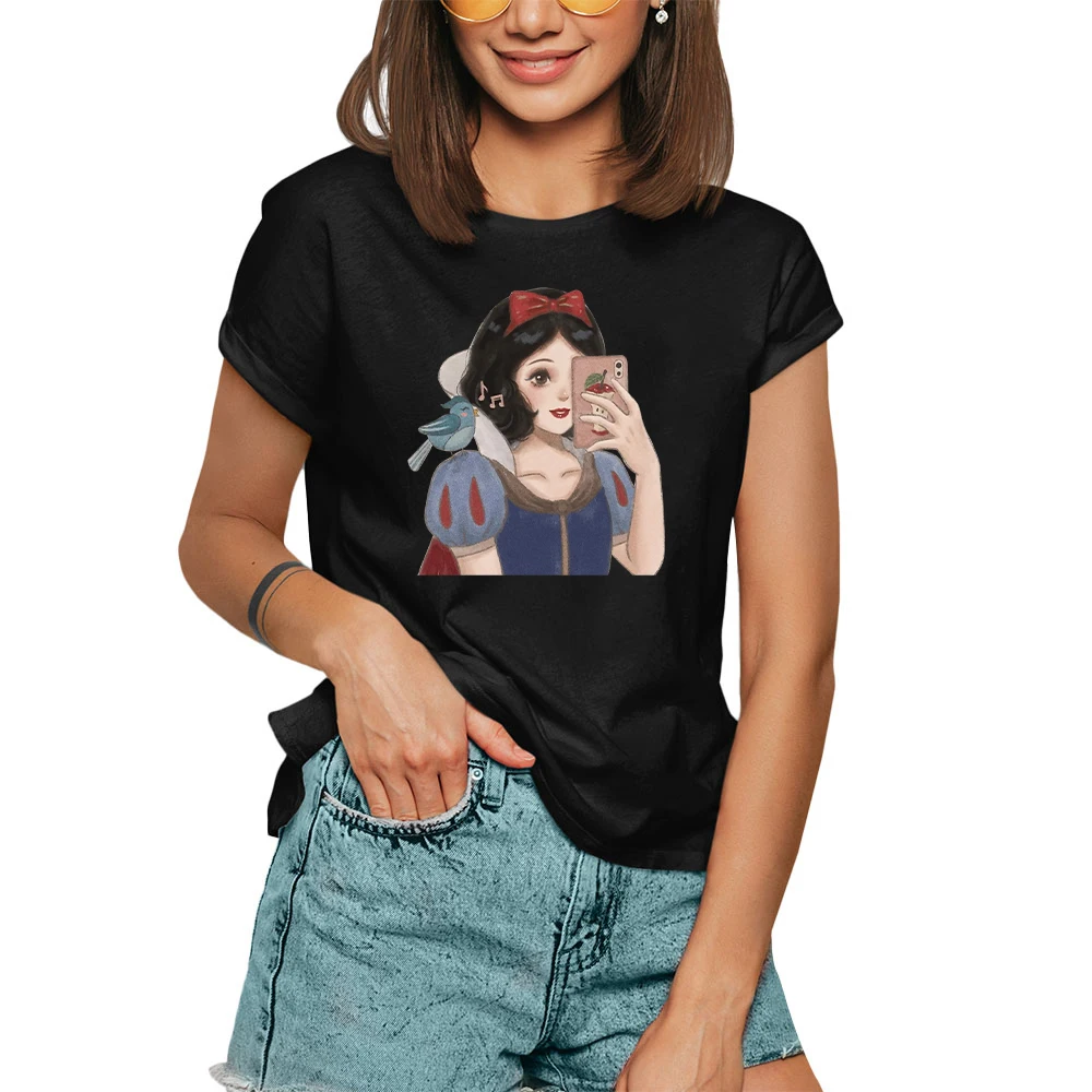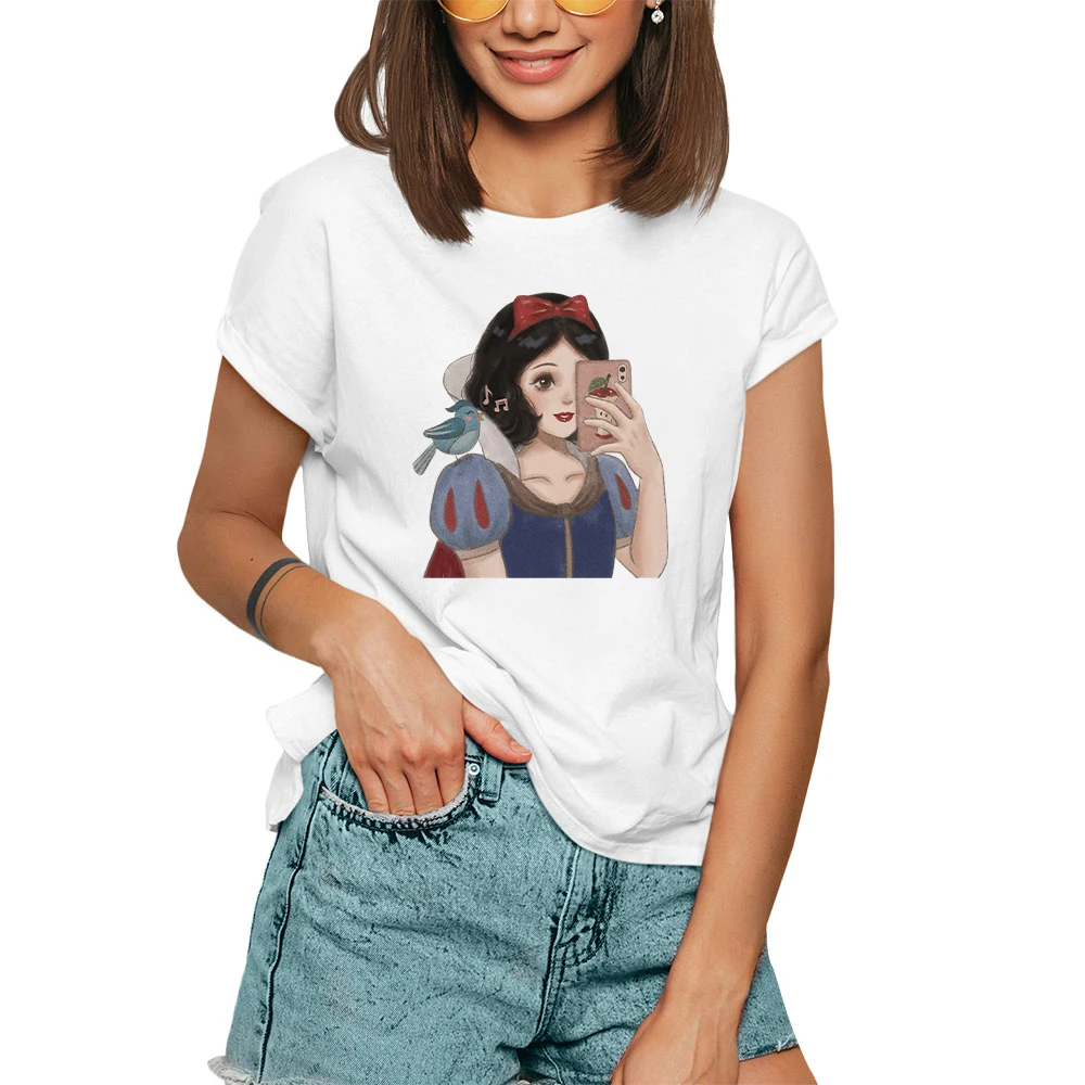 Футболка женская с коротким рукавом, мультяшный рисунок принцессы ж...
