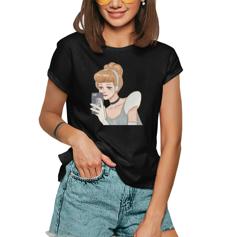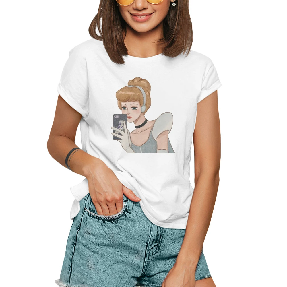 Футболка женская летняя с принтом Золушки, Принцессы Диснея, повседневные футболки Топы