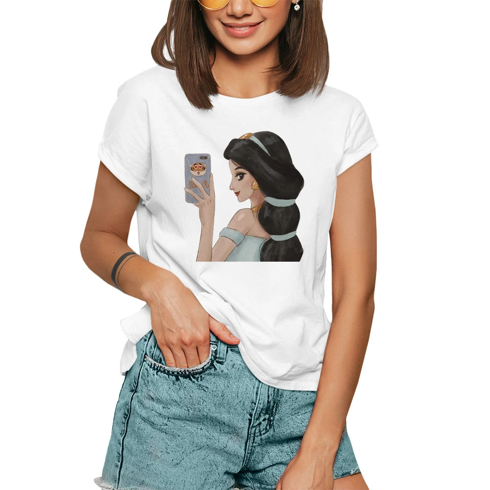 Принцесса Дисней летние новые товары женские футболки с круглым выр...