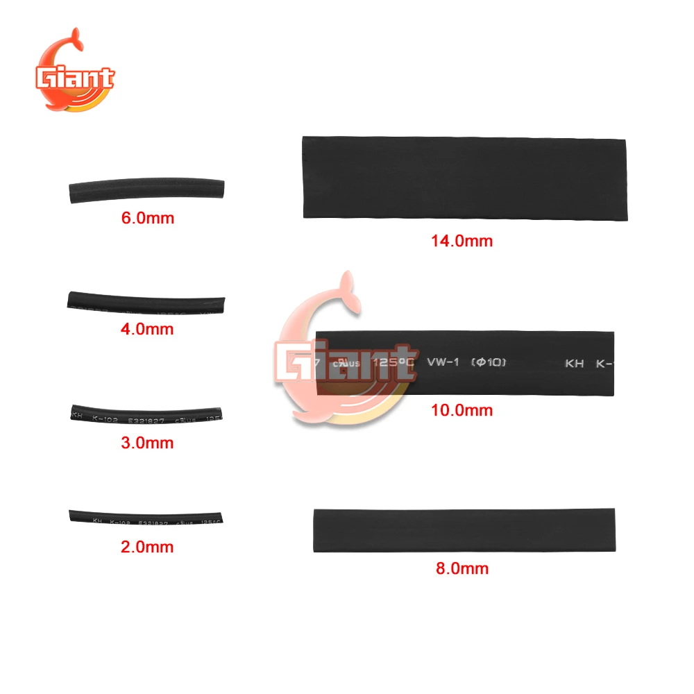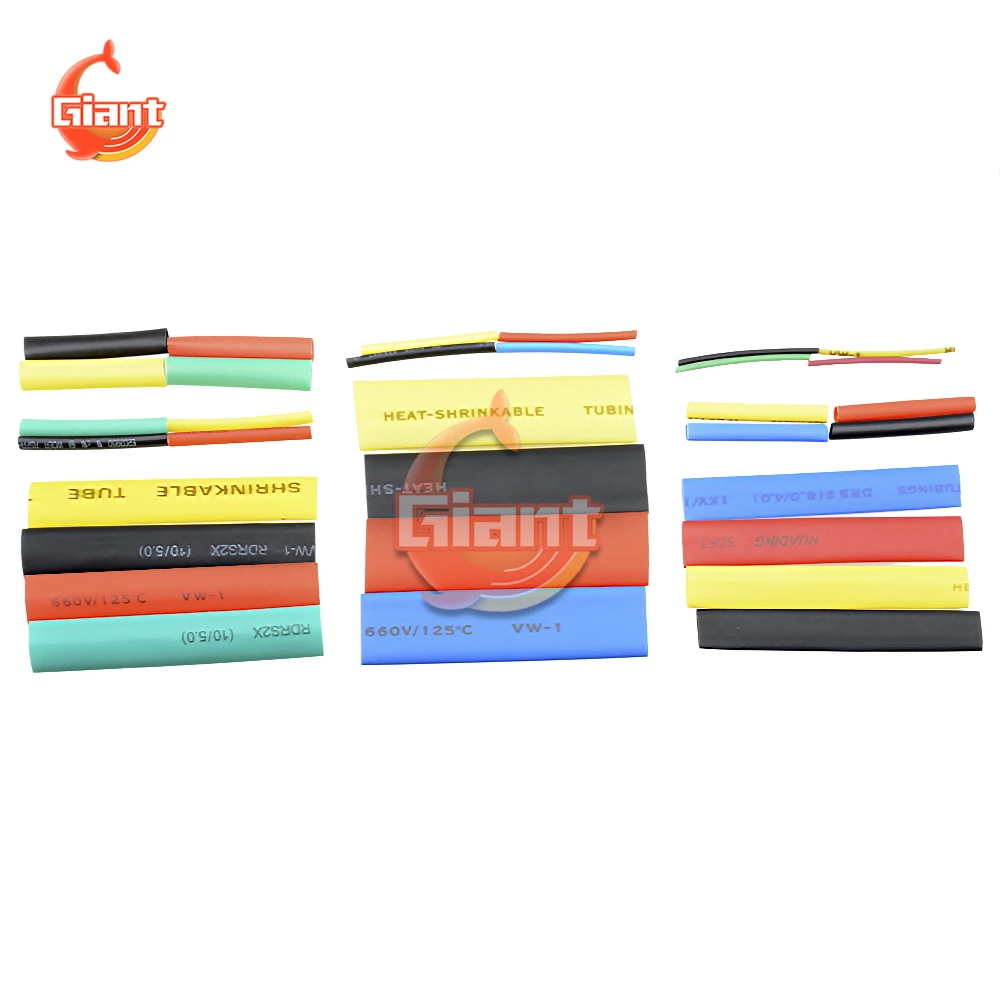 328 шт. термоусадочные трубки из полиолефина 2:1, 5 цветов, 8 размеров