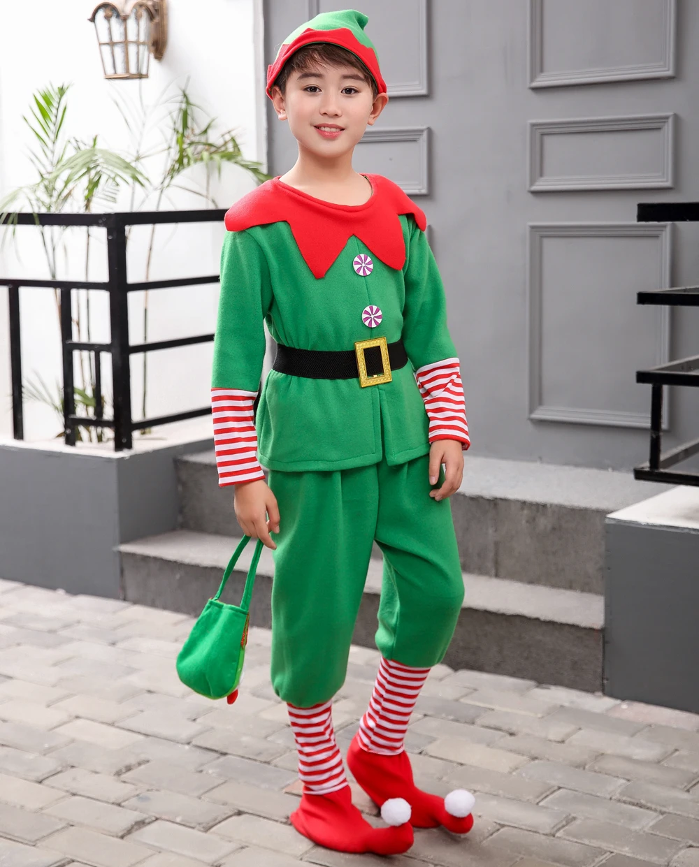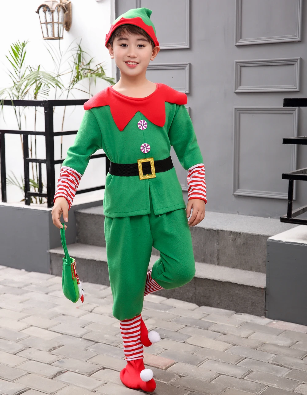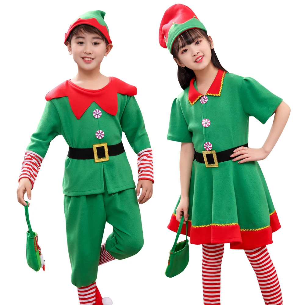 Рождественский эльф, платье для девочек и мальчиков, Детский костюм для вечевечерние, детское платье для карнавала, рождественский подарок