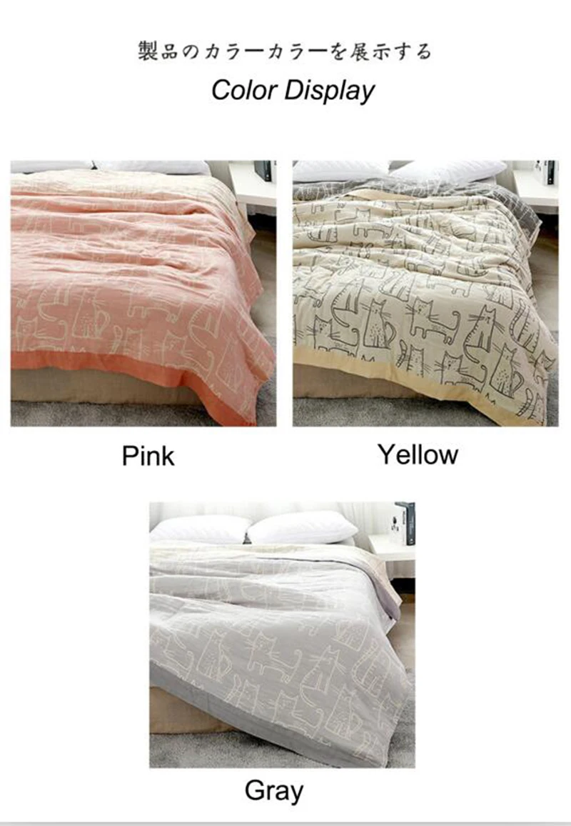 Хлопковые мусульманские летние одеяла для кровати, покрывало, Королевский размер, диван, путешествия, дышащее мультяшное одеяло с котом из ниток, мягкое теплое покрывало